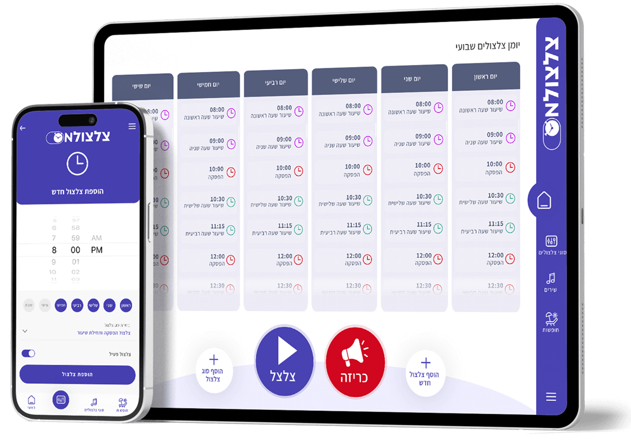 הצטרפו לעשרות מנהלי בתי הספר שכבר עובדים עם מערכת צלצולון – המערכת החכמה לניהול מערך הצלצולים והכריזה בבית הספר שלכם!